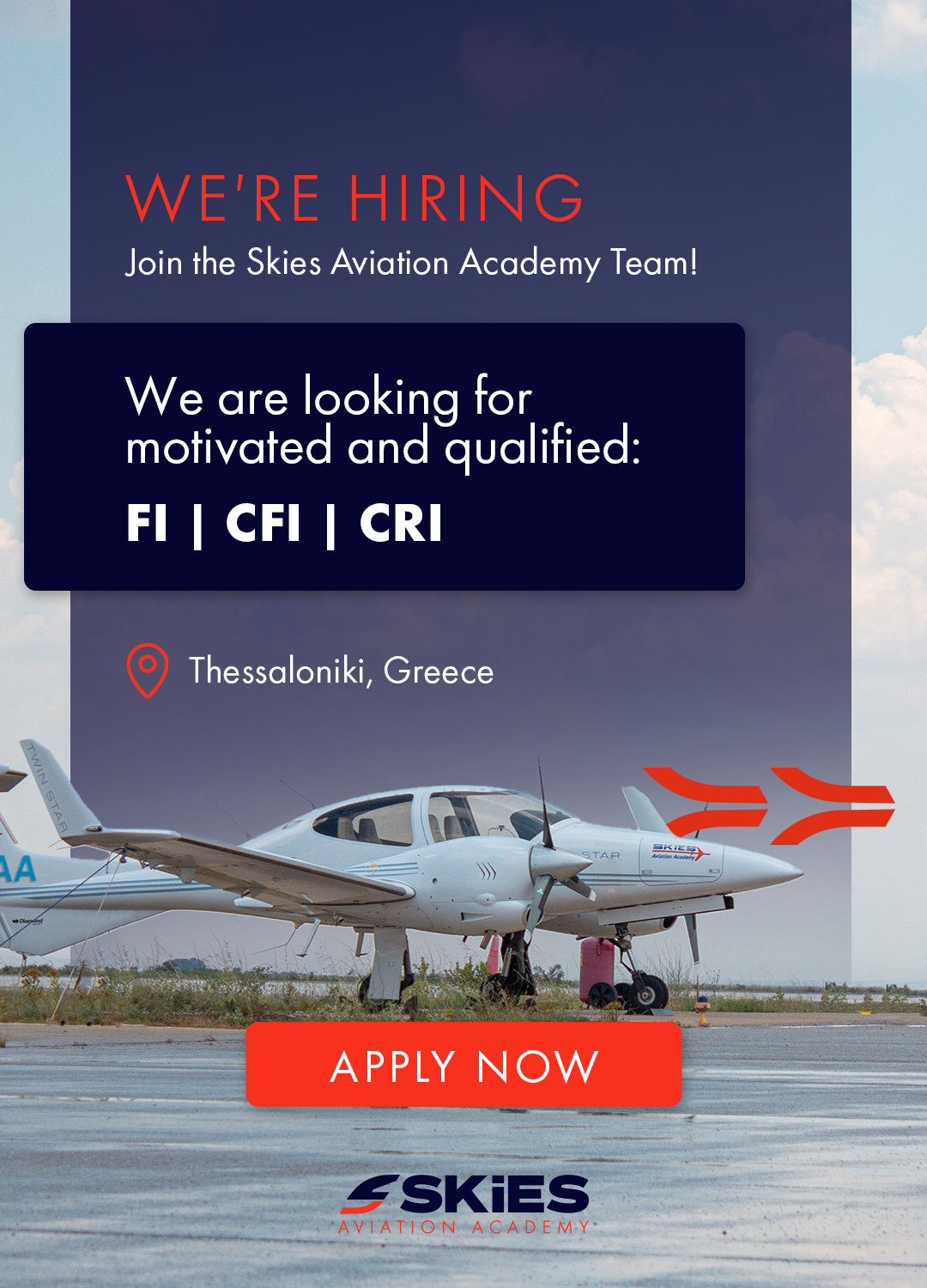 Please submit your CV and relevant documentation to: info@skiesacademy.aero
